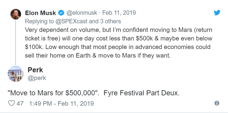 Es un poco injusto comparar las declaraciones de Musk sobre los viajes a Marte con el Festival Fyre. El Festival Fyre fue una estafa, mientras que Musk ha participado en muchos de sus proyectos. Aunque el programa de las naves estelares parece tan futurista y de ciencia ficción que es difícil de creer, su historial con la cohetería y los vuelos espaciales habla por sí solo.